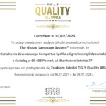 Certyfikat Znak Jakości TGLS Quality Alliance